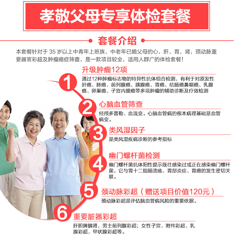 | 产品名称 : | 爱康国宾体检卡 孝敬父母专享套餐 男女通用体检门市价2251 |