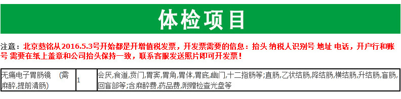 | 产品名称 : | 北京慈铭体检卡 无痛电子胃肠镜 正品授权 免费预约 |