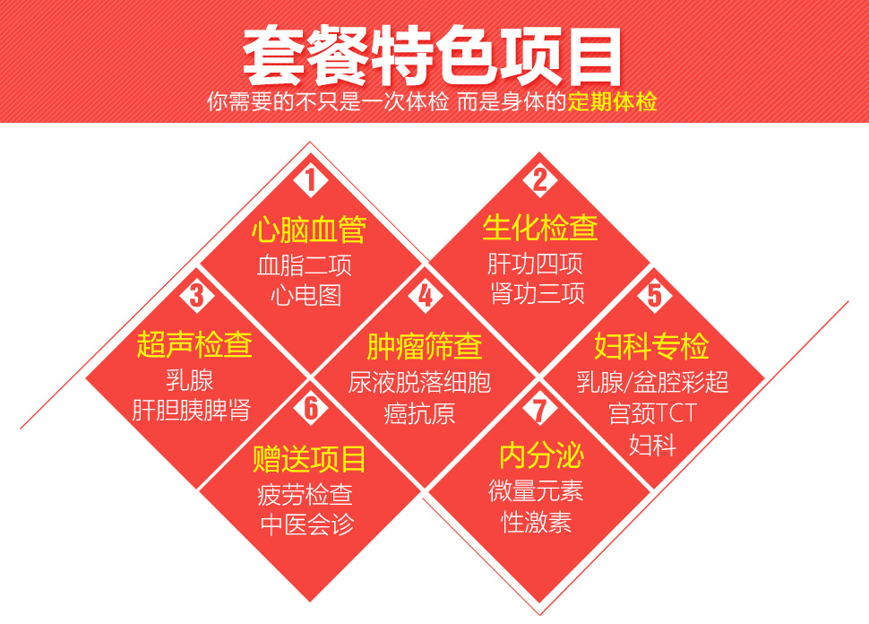 | 套餐特点 | 此套餐含妇科彩超、乳腺彩超、腹部彩超、肝功4项,肾功能3项,微量元素5项,性激素6项,TCT,卵巢癌等等检查,比较适合已婚女士和男士做孕前的筛查 | |